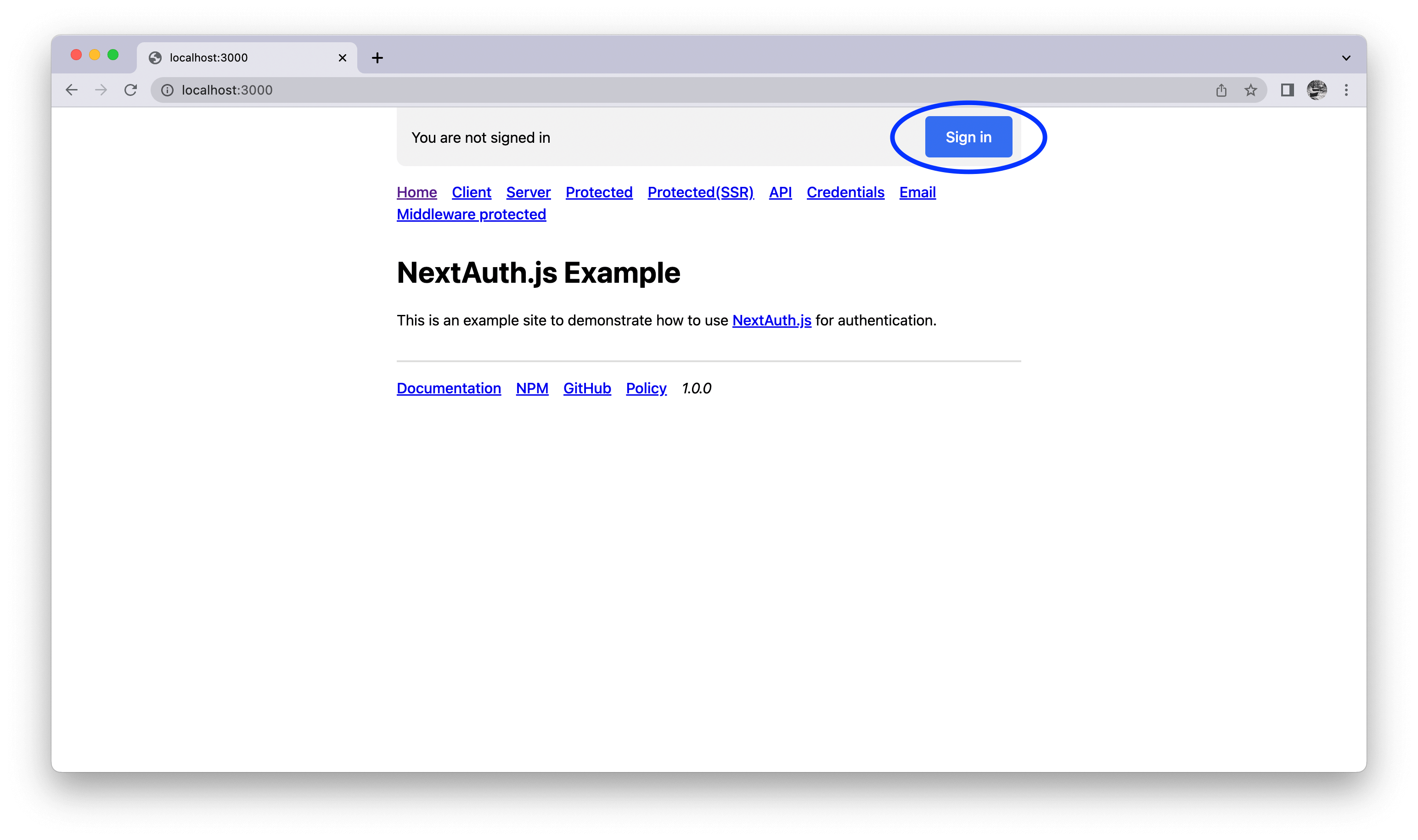 NextAuth.js will already create this API endpoint for you when we start the application later. Note that because we're using Next.js, locally it starts our server on port 3000 by default. Hence, the origin is http://localhost:3000.
